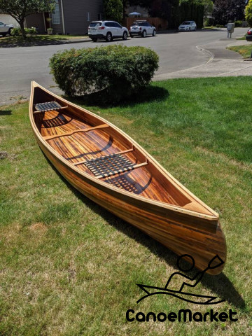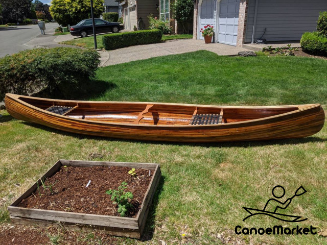 Beautiful hand-made cedar strip canoe that has only been on the water a couple times. I finished building it in the summer of 2020, and it is basically brand new. The boat is on the heavier side due to multiple layers of fiberglass, this makes the canoe extremely resilient and protects the wood underneath.
