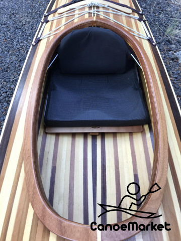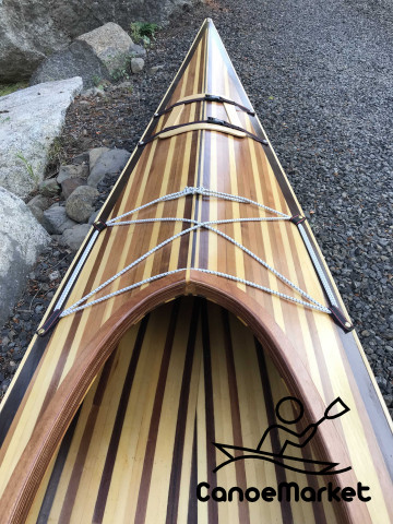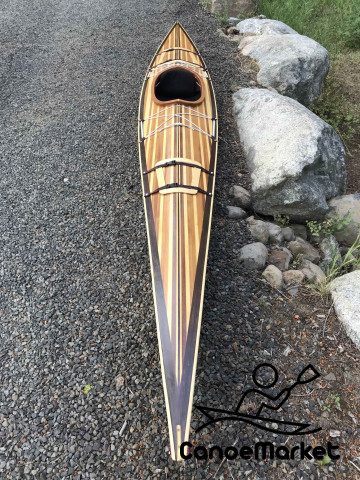 This is a brand new 17' touring kayak made of Western Red Cedar and Alaskan Yellow Cedar. Blue painted bottom that aligns with the waterline. It also has flotation bags and a skirt. Come take a look at all the great details of this kayak and talk to the builder himself! Also willing to ship. Please see the exact specifications below.