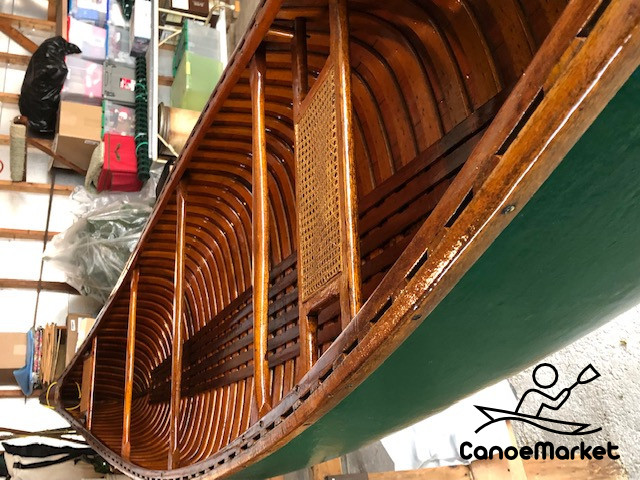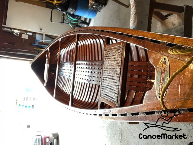 A.A. top-of-line selected matching straight-grained mahogany. I purchased in the summer of 1958. Replaced canvas in late 1960's with sheet fiberglass. Did not replace keel, but will include. This is a freshwater canoe that has traveled many miles and fishing hours in lakes and rivers in northern Michigan.
