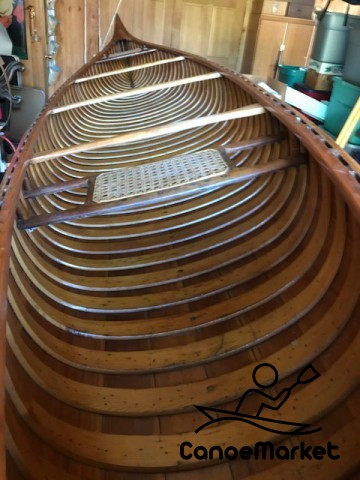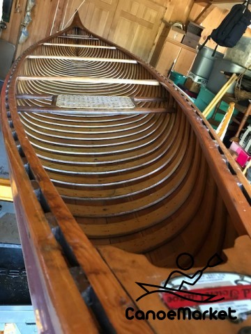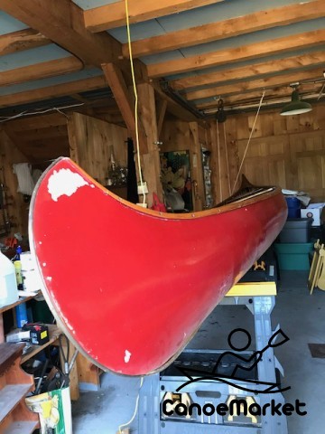 1928 17' wood & canvas Old Towne canoe Interior in excellent condition. Exterior canvas skin needs minor paint repair, otherwise no leaks