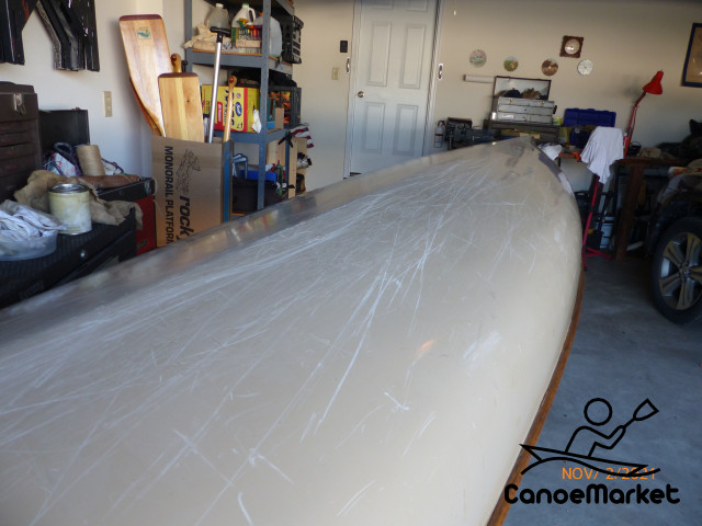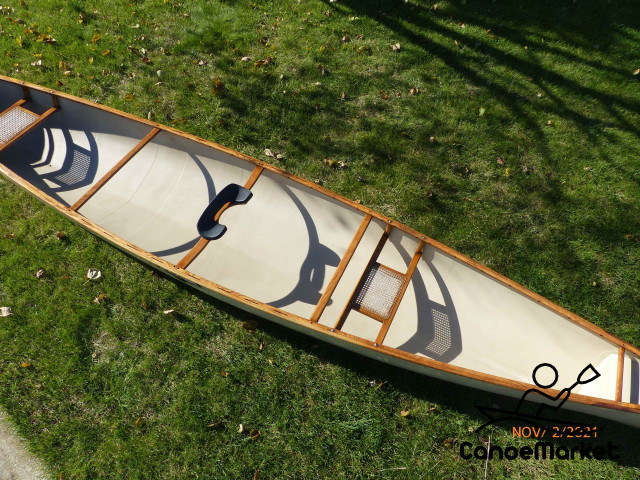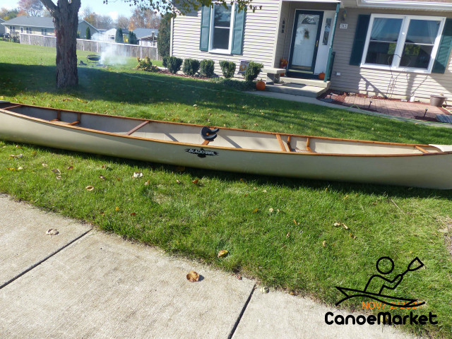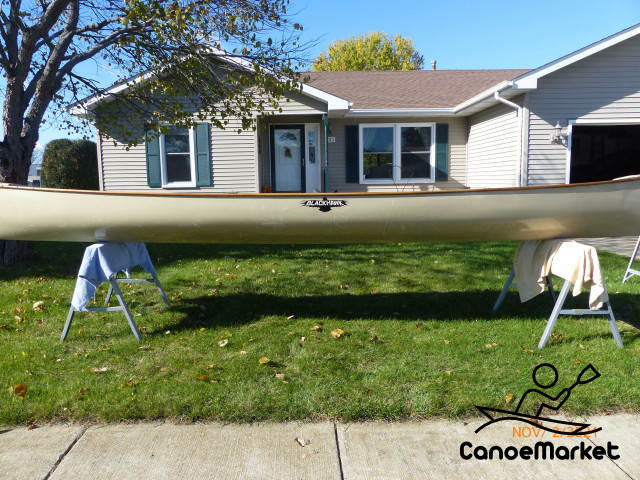 1991 Blackhawk Phantom tandem canoe, designed and built by Phil Siggelkow of Janesville, WI. This is a fiberglass wilderness tripper, 17’10”, with plenty of capacity for gear. Asymmetrical hull design with exceptional stability in big waves and excellent secondary stability with the deep-V hull. One owner, has always been stored inside. Good condition with normal wear, but the canoe has not been used in a number of years, so it doesn’t show its age. Padded portage yoke is included.