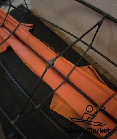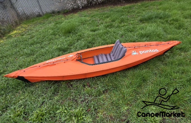 This is a skin over carbon fiber tube skeleton kayak that weighs only 7lbs. It is 10.5 feet long when assembled. The skin is the same material used for inflatable boats. It's only been on the water once but I can't take my dog with me. It handles just fine. Included a a second new skin and inflatable seat. This kayak sells new for $625 and no second skin or seat.