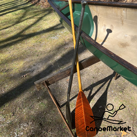 This is a Kevlar composite canoe with a gloss gel coat. Length is 15 feet 8 inches, gunwale width is 30.25 inches, depth at center 13 inches. Paddler weight range (plus gear of 70#) is 160 to 275#. It was made by Phil Sigglekow (owner/builder/designer) of the original Black Hawk Canoe Company in Janesville, Wisconsin. There were a small number of these made from what I have heard. It’s 15 ft 8" long. It has a shallow rocker. It weighs about 39 lbs. Great for portaging and lots of room for gear. Ends have sealed air pockets for flotation. Excellent initial and secondary stability. Hull is in very good condition. Wood gunnels are in very good condition and are treated with linseed oil. Current set up is for solo paddling (cane seat) but can easily be converted for tandem (2nd seat and standoffs not included). There is very little flex in the composite layup. Comes with 54” Kevlar bent canoe paddle and 60” Grey Owl wooden straight paddle and canoe boat sleeve tarp cover. I'm selling it as I don't use it much anymore.