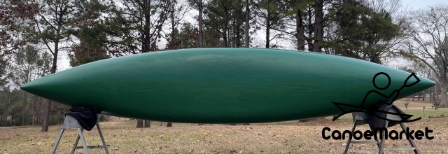 Blue Hole Starburst tandem whitewater tripping canoe for sale. Green/Grey with aluminum gunwales with the original molded plastic, lowered blue hole seats. This canoe is comparable to the Esquif Canyon, Old Town Appalachian. In fact, I think the Esquif Canyon and Old Town Appalachian are deliberate attempts to mimic the Starburst. It's a class III-IV tripping canoe designed by Steve Scarborough that does not sacrifice flatwater speed. (unlike the Dagger Dimension) It's faster than an Old Town Tripper or 17' Grumman and from what I read, it's faster and drier than the Canyon. It's a rounded bottom canoe with a significant amount of rocker so it spins nicely and handles well in whitewater. It's the boat I choose for multi-day trips up to class III-IV rapids. It's a 1990-year model boat still in very good, almost perfect condition as you can see in the photos. Doubtful that you will find another Blue Hole Canoe in this great of shape. Practically zero percent of the vinyl outer layer has been worn off. I’ve replaced all the old decals with new ones that I feel are of better quality and more durable than the old ones installed by Blue Hole. The original decals have no UV protection that is why they are all faded and peeling off. All these new decals have UV protection. This boat is a survivor! A true barn find! I am only selling it because my collection of boats is getting out of hand and I need to thin the herd. I know that my asking price might seem high at first, but I know how valuable these old royalex boats are, especially in this great of shape! T-Formex is the new invention to replace royalex in the canoe industry and who knows how well it will hold up.