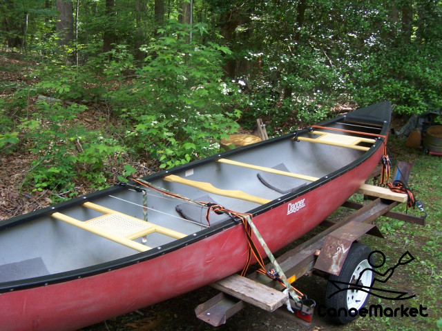 16’ Royalex Hull with minor scratches from whitewater canoeing, otherwise in very good condition. Includes 3 flotation bags (bow, stern and middle), 2 paddles (aluminum shaft), knee pads, bow and stern bumpers and tie down rings. All new seats and thwarts. Excellent river and tripping/expedition canoe. (Trailer not included)