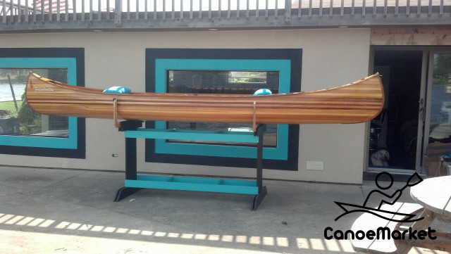 18ft, Handmade canoe with stand. Constructed using several different hardwoods for a distinct look and durability. Fiberglass coating. Stand (with casters) included. Has only been in the water one time.