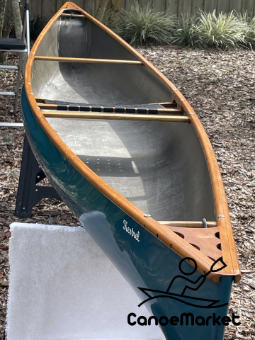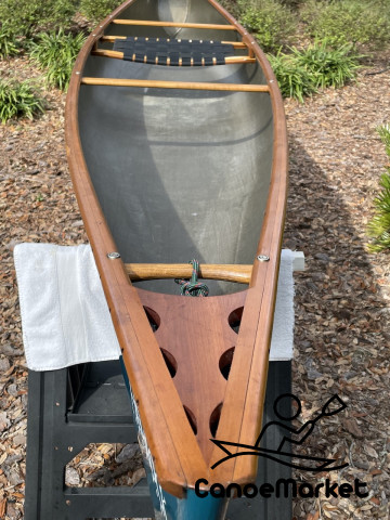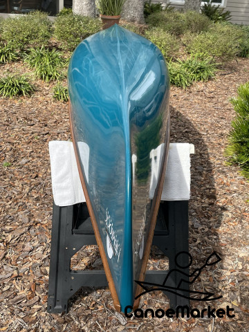 Sitka Spruce with Cherry decks, Ash handles and thwarts, Sitka seat drops. 28 lbs. Very good condition. Always stored indoors, regularly 303 and stained wood. Blue Spruce gel coat