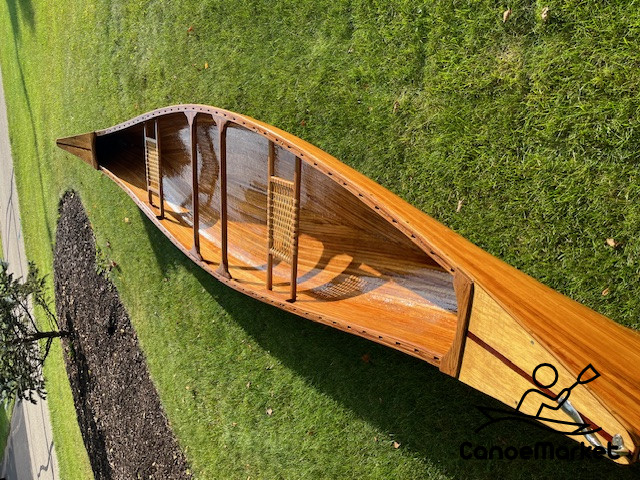 New 16' handcrafted clear red western cedar strip canoe. Handcrafted in the UP of Michigan. Each strip cut from full cedar board and tongue-and-grooved. West Marine epoxy system and fiberglass. Four coats of marine varnish. Weighs approximately 75lbs. Oak gunwales. Seats woven in a snowshoe pattern. Beautiful handling, very smooth. Flatter bottom so more stability. Absolutely beautiful and looks like a floating piece of art. Discounted price due to we have had it in a couple shows as our display.