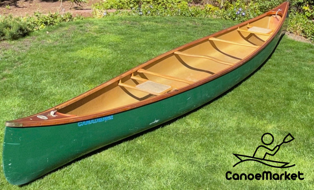 1981 Old Town Canadienne Scuffed gelcoat from 40 years of Bowron Lakes, Yellowstone, San Juans etc but good condition and ready to go again. “V” entry, rounded bottom KEVLAR hull designed by Ralph Frese for optimal speed and maneuverability. 17’ 2” Mahogany outwales and deck, sitka spruce inwales, ash thwarts, cane seats, brass fittings.