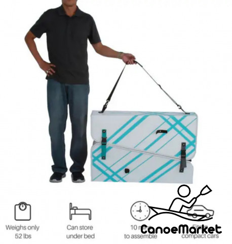 MYCANOE POP is an Origami folding canoe made with one sheet of corrugated plastic that fits in a small sedan when it is folded. when it is unfolded and assembled, it transforms into a 14 foot canoe.