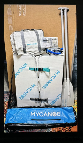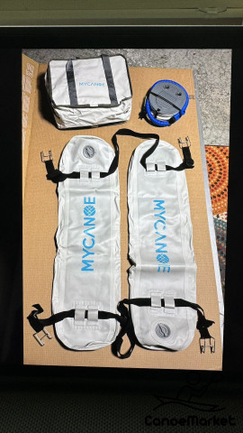 - 2 MYCANOE light weight paddles. T- grip handle, aluminum shaft. 59” long, weighing 1 lb 13oz. Come apart for easy transport.