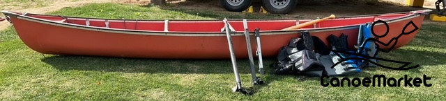 Great starter canoe for sale. Internal frame. Includes paddles, rack for pickup tow hitch, and adult and child life jackets. Great choice for a family to get started with water fun