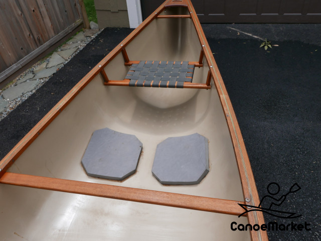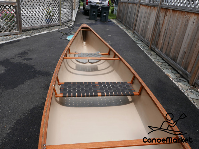 Swift Albany Canoe. Material - Royalex. Designed as an expedition canoe but great for a family. Good in rapids and on quiet lakes. Green in color with cane seats, knee pads, and ash trim. Has a double middle seat for kids. In very good condition with normal wear and tear on the bottom. One scratch in the bow has worn through the Royalex. One owner. Stored inside. Includes 4 paddles, 2 wood and 2 plastic. Also 4 Yakama Canoe clamps included if needed. Length - 17' 2". Gunwale Width - 37". Weight - 78 Lbs. Optimum Weight Range - 525 - 675 Lbs.