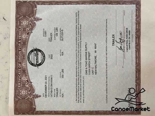 The listed $2625.00 price is for everything (that's 20% off and doesn't include what I paid in tax or shipping). Trailer Pink Slip for registration is included.